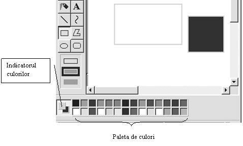 La baza ferestrei, sub foaia pentru desenare, este o paleta de culori. Alegerea unei culori se realizeaza executând clic cu butonul din stânga al mouse-ului pe culoarea dorita. Se va schimba culoarea conturului dreptunghiului.