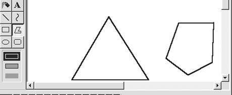Pentru desenarea unui pentagon se procedeaza astfel : se traseaza prima latura. Apoi se indica locul unde trebuie sa apara celalalt vârf si se executa clic. Se executa clic si pentru cel de-al patrulea vârf, iar pentru ultimul vârf se executa dublu clic, iar în acest fel poligonul se închide. Pentru desenarea unui triunghi cu baza orizontala, se procedeaza astfel: se traseaza prima linie, tinând apasata tasta SHIFT. Apoi se elibereaza tasta SHIFT, se indica locul unde trebuie sa apara ultimul vârf si se executa dublu click.