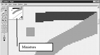 Utilitarul Paint permite crearea de imagini bitmap, într-un mod apropiat desenarii pe hârtie.