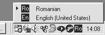 Cu un clic pe acest indicator se deschide un meniu ce permite alegerea tastaturii dorite (trebuie ca sa fie o fereastra deschida pentru a se putea schimba tastatura).