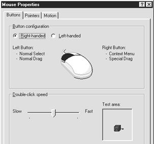 Eticheta Buttons, permite utilizarea mouse-ului atât de catre stângaci, cât si de catre dreptaci, precum si viteza cu care se executa cele doua clic-uri pentru a obtine un dublu clic.