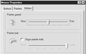 Eticheta Motion permite stabilirea faptului daca mouse-ul lasa dâre sau nu atunci când este deplasat pe ecran.