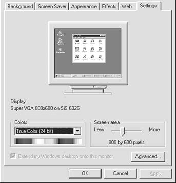 Eticheta Appearence permite stabilirea schemei de culori utilizata de catre Microsoft Windows (culorile ferestrelor, a barelor de titlu, etc.)