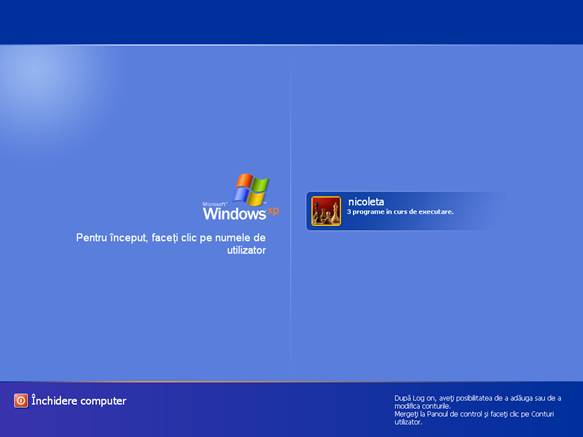 Deschiderea si închiderea unei sesiuni de lucru în Windows XP