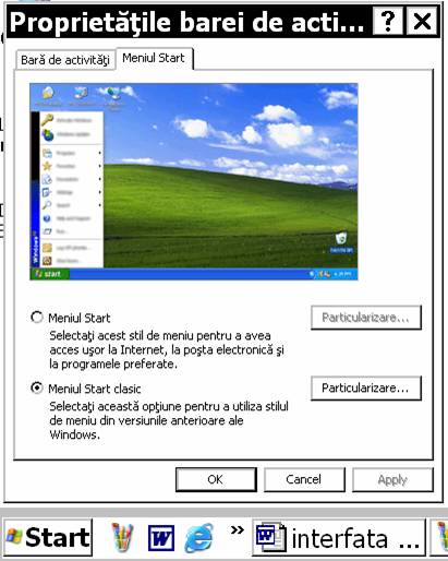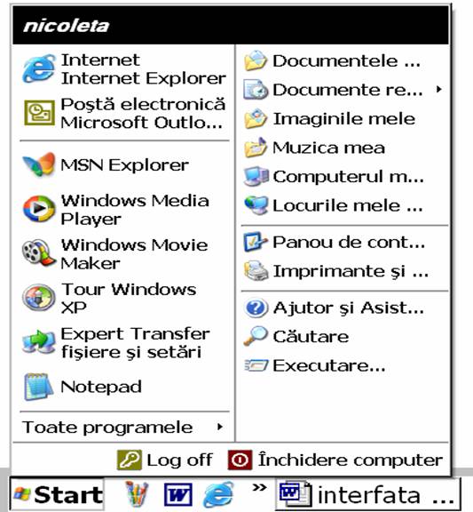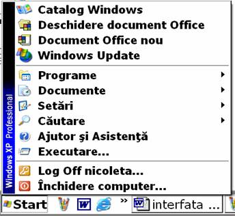 o Meniul Start - pentru varianta de afisare specifica Windows XP