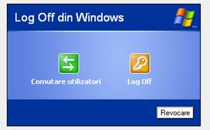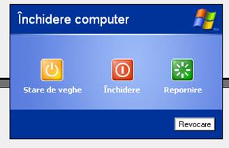 Sfârsitul sesiunii de lucru se realizeaza prin apelarea optiunii "Închidere computer" (Shut Down). În urma acestei comenzi apare fereastra din figura de mai jos: