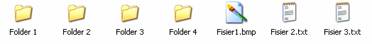 De asemenea folderele sunt simbolizate cu ajutorul unei imagini grafice sub forma de dosar de culoare galbena si care are scris sub ea numele folderului.