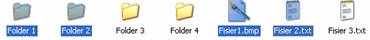 Selectarea unui grup de foldere/fisiere care nu formeaza un bloc compact. Pentru a selecta mai multe foldere/fisiere, care nu formeaza un grup compact se tine apasata tasta CTRL in timp ce se executa clic cu mouse-ul deasupra icon-urilor elementelor respective;