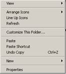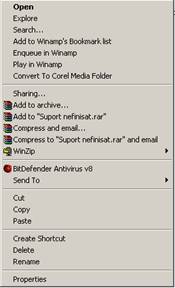 Avand selectat un folder, fisier, grup de foldere si/sau grup de fisiere prin click cu butonul drept al mouse-ului se apeleaza asa numitul meniu contextual. Asa cum ii spune si numele, acesta difera in functie de contextul in care ne gasim: folder, fisier, fereastra, etc.