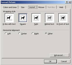 Īn fereastra FORMAT PICTURE selecteza eticheta LAYOUT. Īn aceasta fereastra vei gasi urmatoarele optiuni: