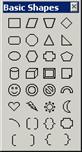 n Basic Shapes (Forme de baza). Exista 32 de forme, de la triunghiuri la inima sau de la fulger la semiluna. Ultimele sapte forme reprezinta o serie de paranteze drepte sau rotunde.