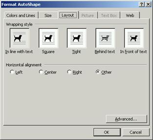 Butonul Advanced… permite precizarea cu exactitate a pozitiei formei fata de marginile foii, marginile paginii, marginile paragrafului sau fata de un caracter.