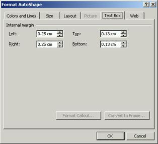 n Text Box Caseta text). Permite stabilirea distantelor care trebuie lasate intre marginea formei si textul din forma.