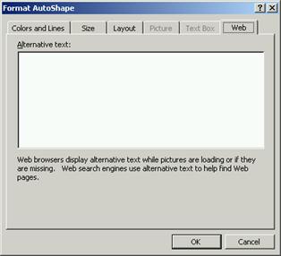 n Web. Daca intentionezi sa publici documentul ca pagina Web, introdu textul care va aparea pe pagina Web in locul formei automate. Acest text apare in timp ce pagina se incarca in browser ori in cazul in care forma automata lipseste sau utilizatorul a dezactivat afisarea imaginilor in browser-ul de Internet