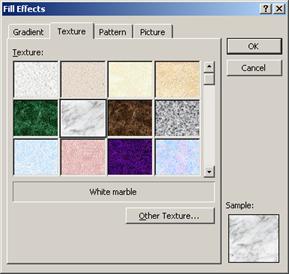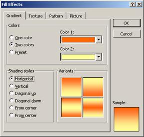 Utilizarea casetei de dialog Fill Effects este prezentata in continuare: