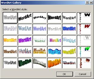 n Alege un stil WordArt executand dublu clic pe unul din esantioane.