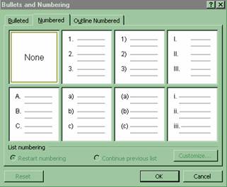 se poate face din meniul Format de la comanda Bullets and Numbering eticheta Numbered.