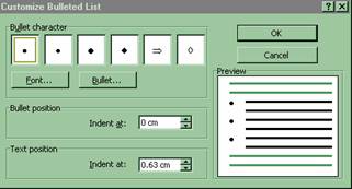 Modificarea simbolurilor se poate face din meniul Format cu comanda Bullets and Numberig, eticheta Bulleted: