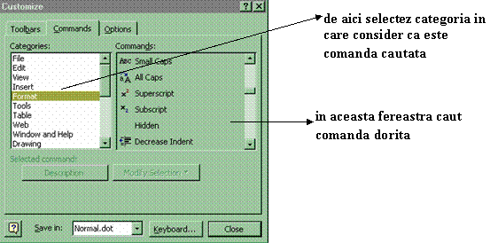 Mergeti in meniul Tools la comanda Customize eticheta Commands: