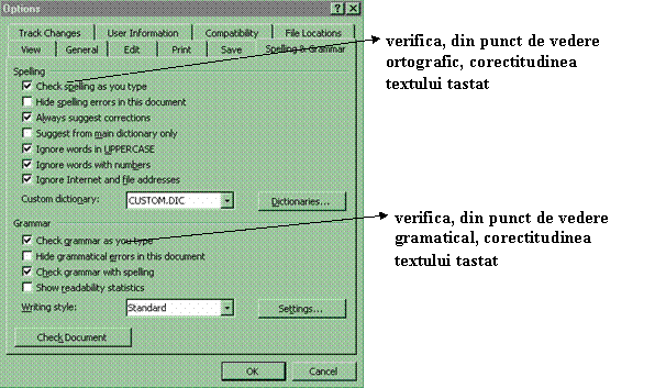 dictionar propriu (Custom.dic). Intotdeauna Word va consulta mai intai