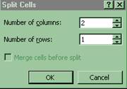 in care indicati numarul de coloane, respectiv de linii dorit pentru celula respectiva.