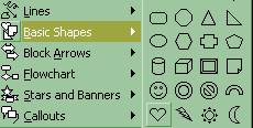unde va pozitionati pe categoria dorita si apoi faceti clic, in submeniul aparut in dreapta, pe obiectul dorit. Dupa care, cu mouse-ul liber, adica fara a tine butonul stang apasat, va deplasati pe foaie, in locul dorit, unde, cu agat si trag, conturati obiectul.