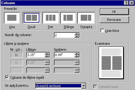 Se stabileste numarul de coloane dorit si se apasa butonul OK.
