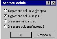 Se alege optiunea Deplasare celule la dreapta sau Deplasare celule în jos