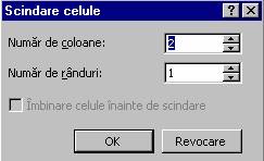 Va aparea o fereastra de dialog care permite utilizatorului sa precizeze numarul de coloane în care sa se împarta celula respectiva.