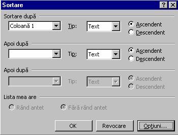 Din meniul Tabel, se activeaza comanda Sortare