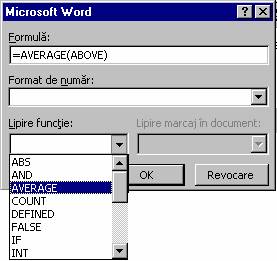Din meniul Tabel se selecteaza optiunea Formula
