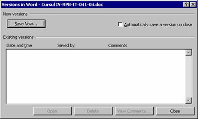 n Apesi butonul Save Now. Pe ecran va aparea fereastra Save Version īn care poti introduce un comentariu referitor la acea copie.