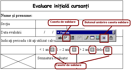 Despre modul de creare a cāmpurilor cu casete de validare am discutat īn paragraful anterior (Crearea formularelor tiparite).