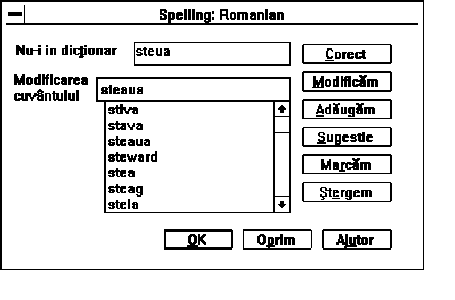 butonul "OK'' sau tastele Alt-O . Daca cuvântul