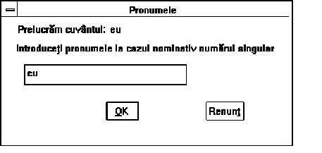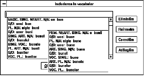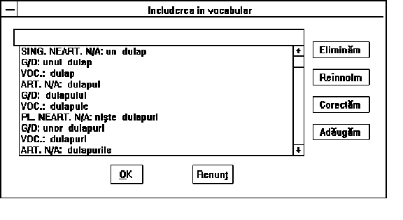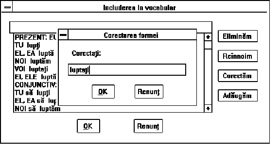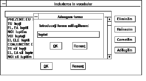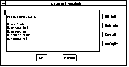 Convingându-va ca toate flexiunile sunt corecte, activati butonul "OK'' pentru a completa vocabularul, în caz contrar indicati butonul "Renunt''.