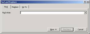 In urma apelarii acestei comenzi, pe ecran apare caseta de dialog Find and Replace ca in imaginea de mai jos.