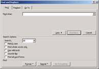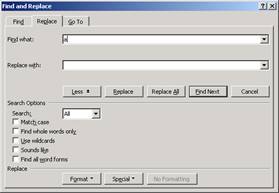 In zona Find se gasesc trei butoane care permit specificarea formatarilor cautate, a caracterelor speciale sau a obiectului cautat: