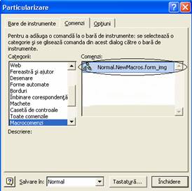 Analiza figurii 1 pune în evidenta existenta câmpului Memorare macrocomandă în. Acest câmp permite stabilirea fisierului în care se va salva macrocomanda, în fisierul sablon Normal.dot, în fisierul sablon ce sta la baza documentului în care se înregistreaza macrocomanda, sau numai în documentul în care s-a definit macrocomanda. Hotarârea luata aici va determina aria de disponibilitate a macrocomenzii astfel create. Macrocomenzile salvate în Normal.dot vor fi disponibile în toate fisierele, cele salvate în sablonul de la baza documentului curent vor fi disponibile în documentele ce se vor crea (sau au fost create) pe baza acestui sablon, în vreme ce macrocomenzile salvate numai în fisierul curent vor fi disponibile numai în acesta.