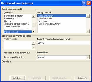 Se mai face precizarea ca unei macrocomenzi pentru care s-a definit un buton i se poate asocia si o combinatie de taste.