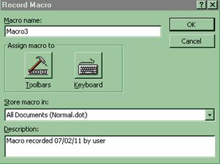 Tot acest proces incepe cu comanda Tools, Macro, Record New Macro.