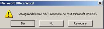 daca dam click pe casuta Da (Yes), vom salva modificarile realizate īn acel document.