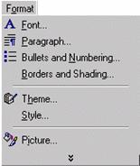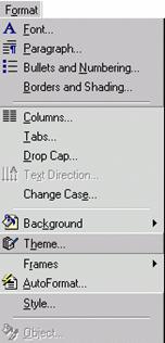 In cadrul modulului "Gestionarea interfetei cu utilizatorul" ati asimilat informatiile necesare in legatura cu specificul unor meniuri des utilizate in aplicatiile Microsoft. Office. Microsoft Word fiind una dintre aplicatiile incluse in acest pachet recunoaste prezentarea meniurilor din modulul amintit putin mai sus pe langa care include si meniul Format prezent, putin mai jos, in Fig. 3. 2 prin varianta restransa sau expandata. Acest meniu cuprinde o serie de comenzi care ofera utilizatorului posibilitatea de a modifica aspectul textului, pentru a-l face cat mai accesibil si atractiv.