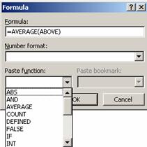 n Selecteaza din meniul Table optiunea Formula. Se deschide caseta de dialog Formula, care deja are īn caseta Formula: sugerata o formula.