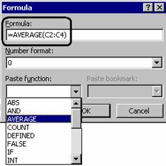 n Din caseta Paste function: alege AVERAGE (medie). Aceasta functie este inserata īn caseta Formula:.Punctul de inserare clipeste īntre cele doua paranteze.