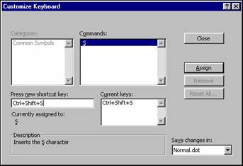 Se defineste o noua shortcut sau se inchide fereastra Symbol cu Close.