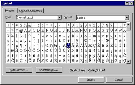 Shortcut‑urile sunt combinatii de taste cu ajutorul carora se pot introduce in text caractere care nu sunt mapate(nu se gasesc) pe tastatura, cum ar fi: a, s, t, §, s, × etc. Ele asigneaza unei combinatii de taste unul din acele caractere nemapate. Aceste shortcut‑uri (scurtaturi), odata facute, sunt memorate de procesor.