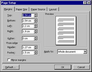 Acest lucru se realizeaza prin intermediul casetei Page Setup din meniul File.