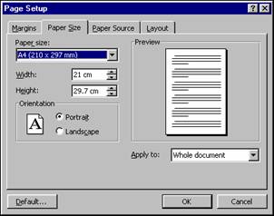 Word 2003 are o lista de formate tipografice uzuale (A4, A5, Letter etc.). Daca se doreste tiparirea pe un format nestandard, se va folosi optiunea Custom, definindu‑se inaltimea si latimea noului format (maxim 550mmx550mm).