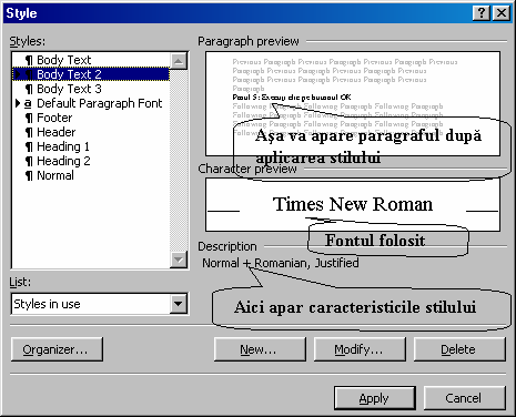 Nota: Stilurile de baza: Normal, Heading 1, Heading 2, , nu pot fi sterse, decat modificate.