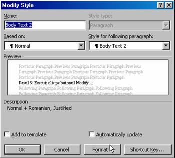 butonul Format pentru a modifica caracteristicile de formatare ale stilului